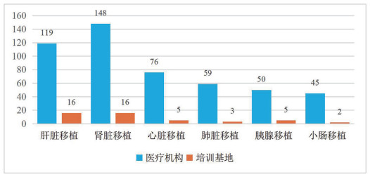 图 1 器官移植医疗机构和培训基地数量 |