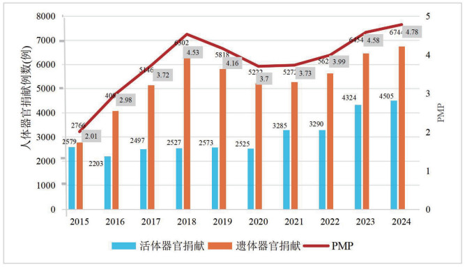 图 3 我国内地人体器官捐献年度数量和PMP |